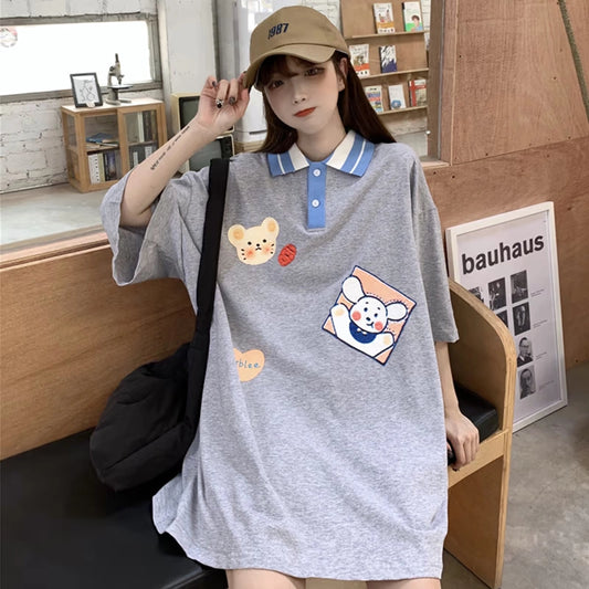 Plus Size 100.00kg Polo Shirt Collar Short Sleeve T-shirt Women Chinese Fad Couple Oversize Loose Preppy Style Half Sleeve Tops